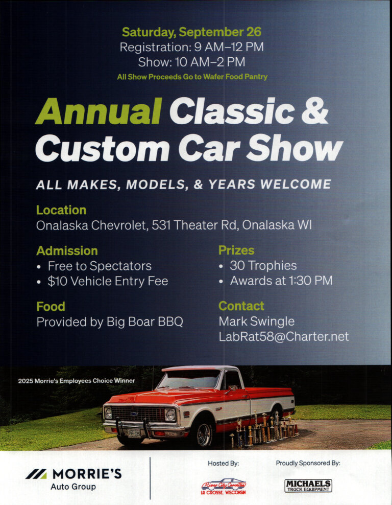 RIVER CITY CORVETTES | P.O. Box 2361, LaCrosse, WI 54602 Significant Up Coming events The People Behind the WrenchA Family/Support Group Appreciation Lunch on Friday April 24, 2026 at Western Technical College Automotive Department Use the information and sign-up link for farther information and to register for this event. Information and Sign-up Form